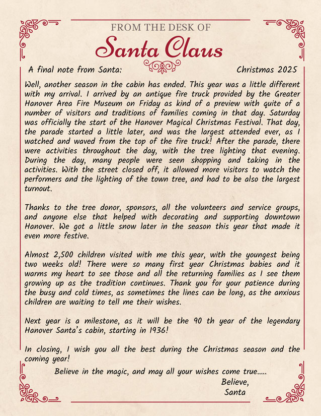 | HANOVER PA'S SANTA CABIN | Christmas in Hanover PA |